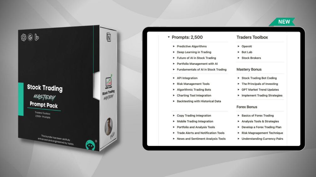 In this comprehensive pack of 2,500+ trading prompts, you'll unlock the secrets to harnessing the power of artificial intelligence for your trading strategies.