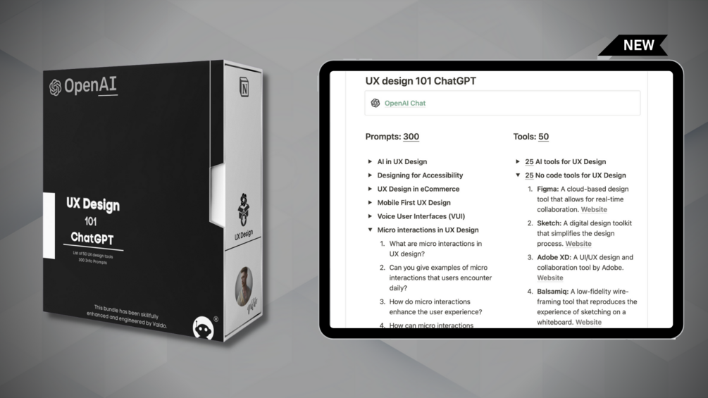 The UX Design 101 ChatGPT offers an exceptional blend of Info/Building prompts & tools, empowering you to create intuitive, user-centered products with ease.
